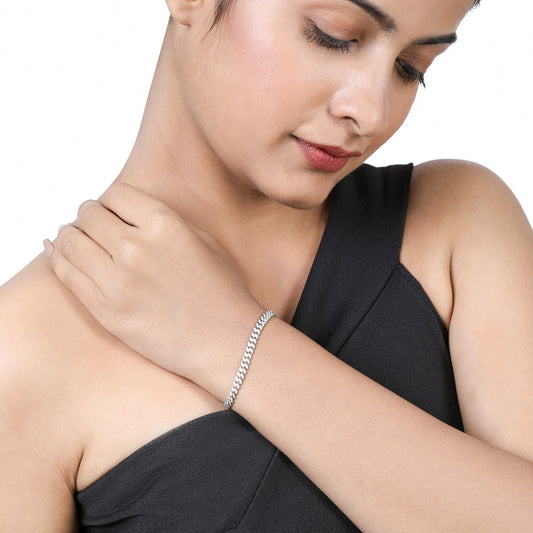 Solid Gold 0.7ct Natural Diamond 4mm Cuban Link Chain Bracelet