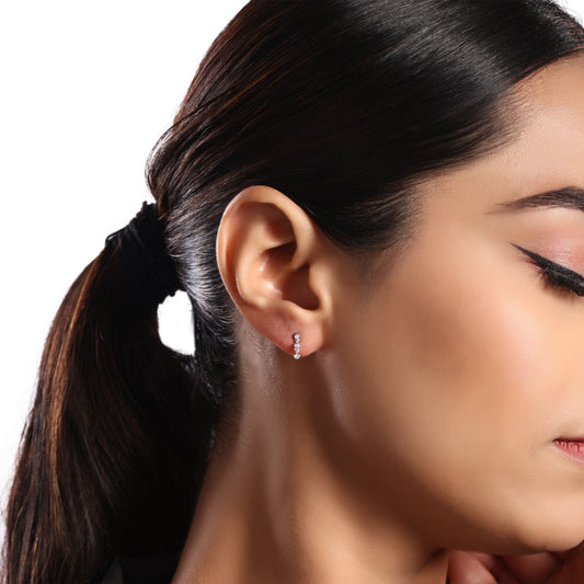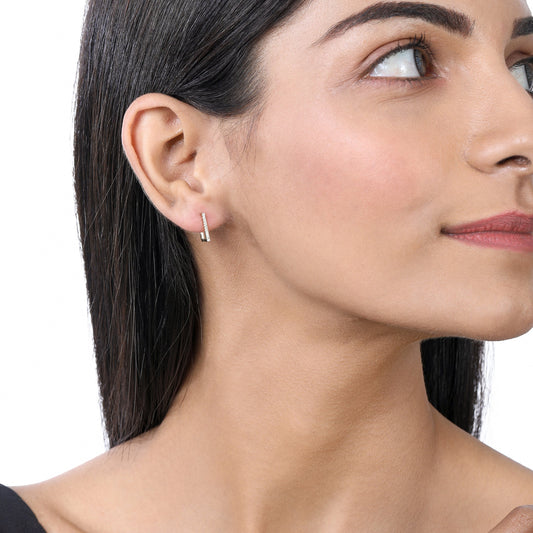 Solid Gold 0.1ct Natural Diamond Double Connect Huggie Earrings