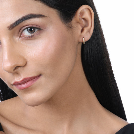 Solid Gold 0.1ct Natural Diamond Huggie Hoop Channel Double Row Earrings