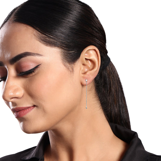 Solid Gold 0.1ct Natural Diamond Chain Long Drop Dangle Stud Earrings