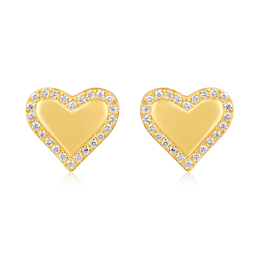 Solid Gold 0.1ct Natural Diamond Heart Half Stud Earrings