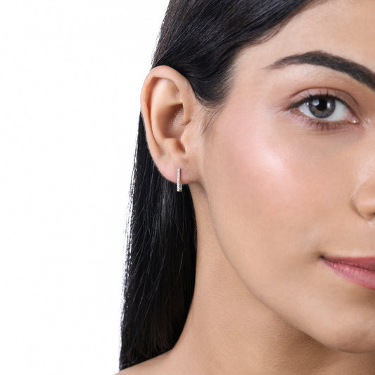 Solid Gold 0.11ct Natural Diamond Rectrangle Square Huggie Hoop Earrings