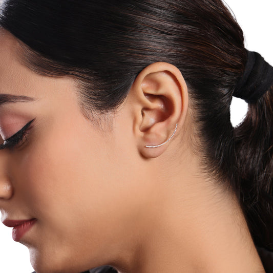 Solid Gold 0.11ct Natural Diamond Climber Curved Sword Stud Earrings