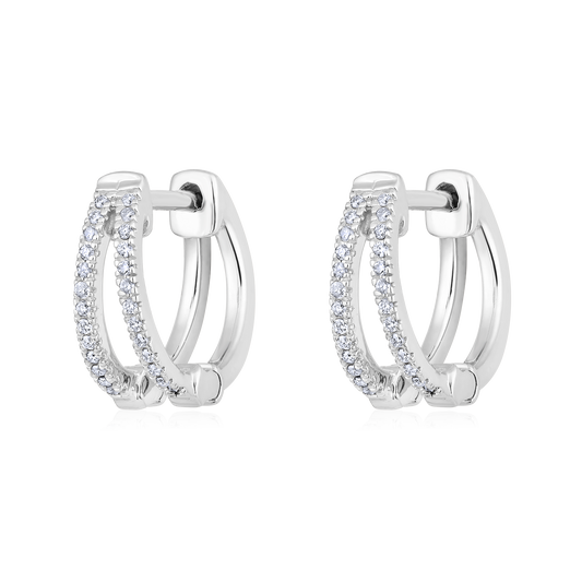 Solid Gold 0.11ct Natural Diamond 2 Row Twin Cage Huggie Earrings