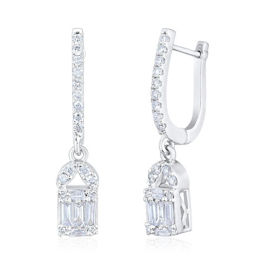Solid Gold .7ct Natural Diamond Baguette Chandelier Hoop Earrings