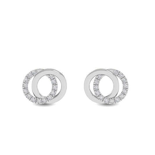 Solid Gold 0.07ct Natural Diamond Double Circle Two Hoop Stud Earrings