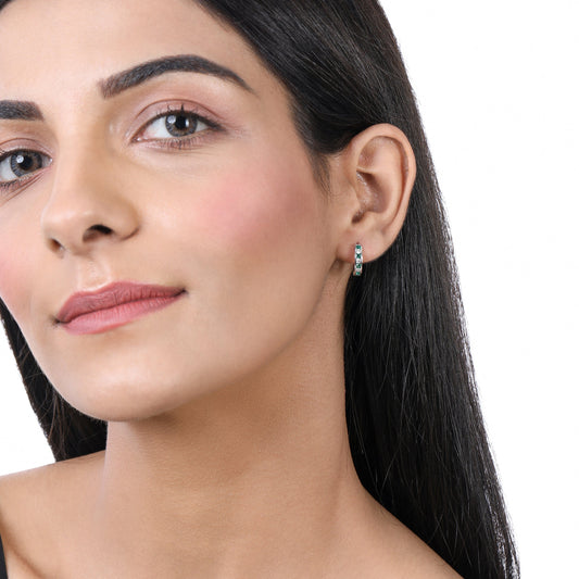 Solid Gold 0.5ct Natural Diamond w/ Emerald Hoop Earrings