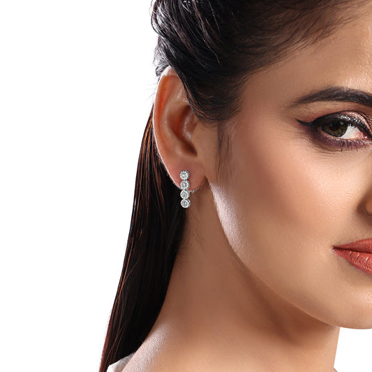 Solid Gold 0.6ct Natural Diamond Multi Pierce Dangle Drop Stud Earrings