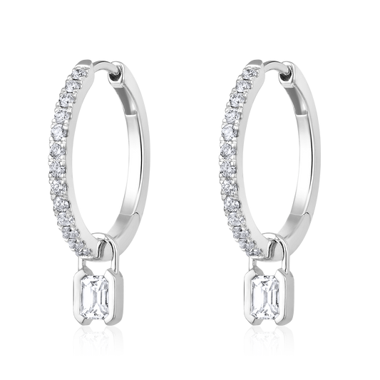 Solid Gold 0.63ct Natural Diamond Emerald Lock Charm Drop Hoop Earrings