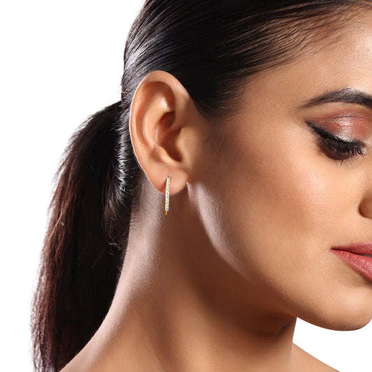 Solid Gold 0.5ct Natural Diamond C Shape Open Hoop Stud Earrings