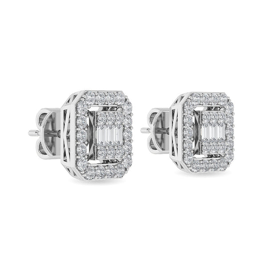 Solid Gold 0.5ct Natural Diamond Baguette Octagon Halo Stud Earrings