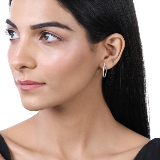 Solid Gold 0.4ct Natural Diamond Round Inside Out 20mm Hoop Earrings
