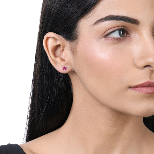 Solid Gold 0.56ct Ruby Square Stud Earrings