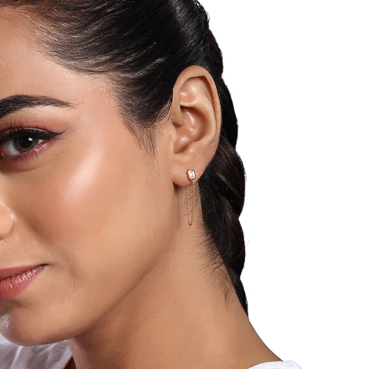 Solid Gold 0.4ct Natural Diamond Emerald Chain Long Drop Loop Earrings