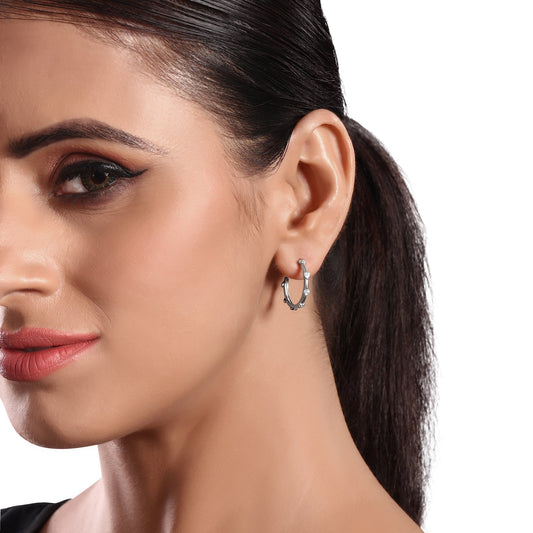 Solid Gold 0.2ct Natural Diamond Leaf Branch Thick Huggie Hoop Earrings