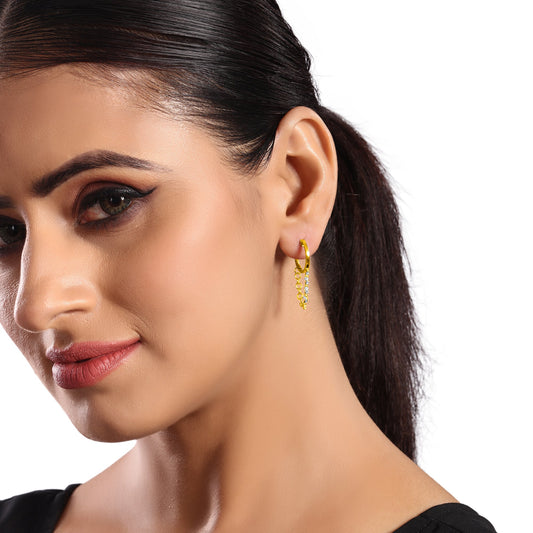Solid Gold 0.2ct Natural Diamond Multi Pierce Hoop Huggie Chain Earrings