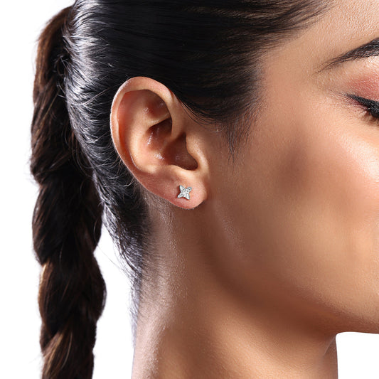 Solid Gold 0.2ct Natural Diamond Spark Floral Star Spike Stud Earrings