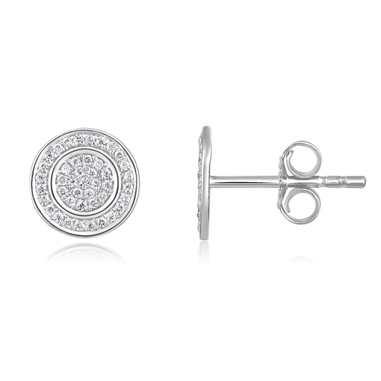 Solid Gold 0.2ct Natural Diamond Round Studded Halo Stud Earrings