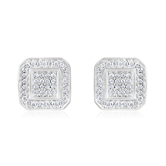 Solid Gold 0.2ct Natural Diamond Rectangle Halo Studded Stud Earrings