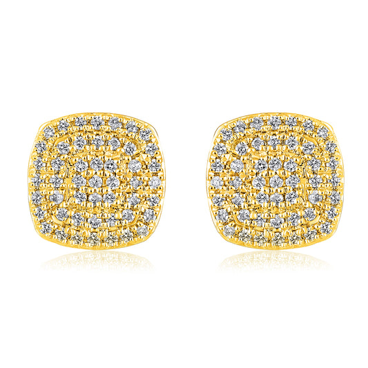 Solid Gold 0.2ct Natural Diamond Square Rhombus Cluster Stud Earrings