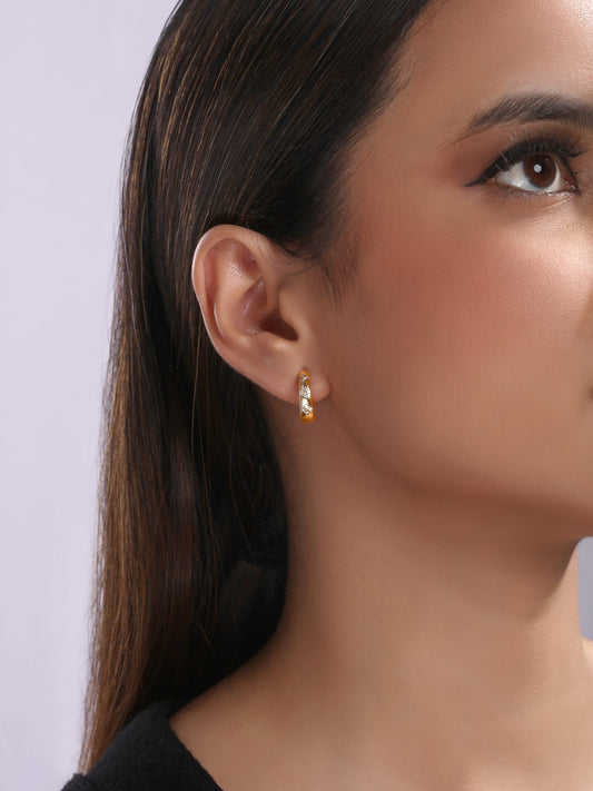 Solid Gold 0.2ct Natural Diamond Non-Uniform Bezel Halo Huggie Earrings