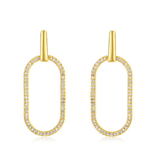 Solid Gold 0.2ct Natural Diamond Paperclip Oval Long Drop Earrings