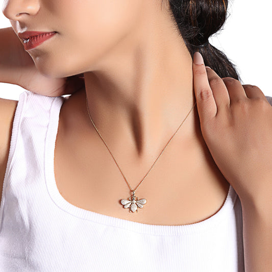 Solid Gold 0.34ct Natural Diamond Honey Bee Bug Necklace