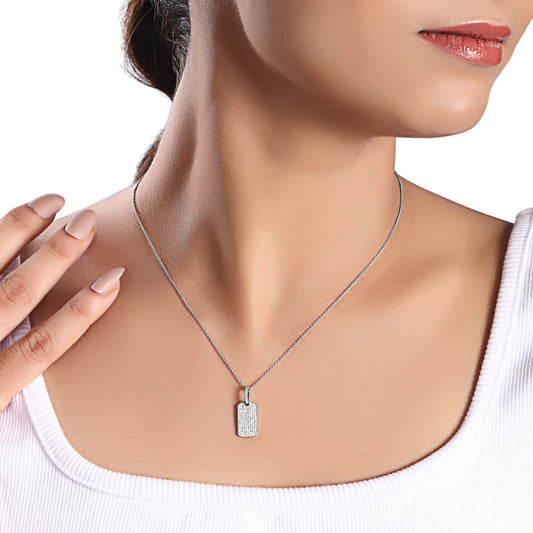Solid Gold 0.33ct Natural Diamond Tag Rectangle Bar Studded Necklace