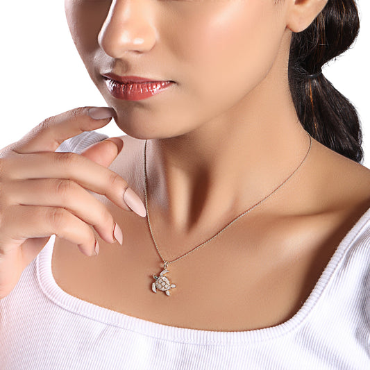 Solid Gold 0.2ct Natural Diamond Tortoise Sea Turtle Pendant Necklace