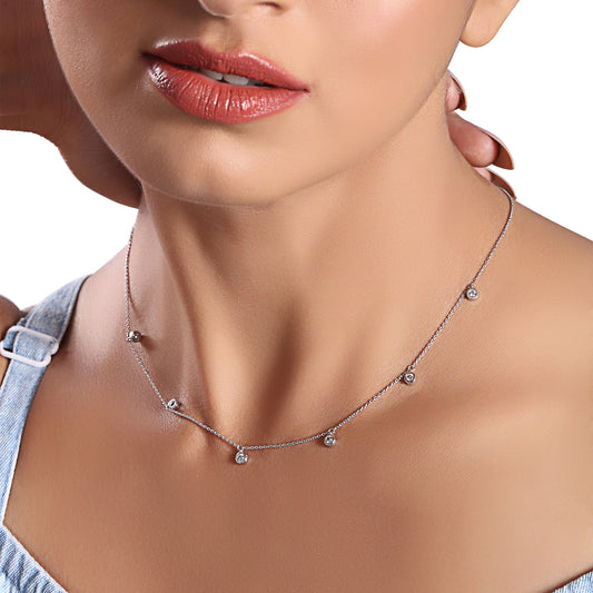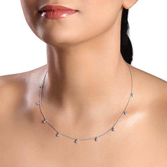 Solid Gold 0.3ct Natural Diamond By Yard Dangle Drop Station Necklace