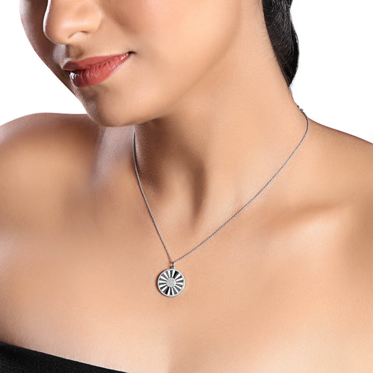 Solid Gold 0.2ct Natural Diamond Sunshine Disc Shield Necklace