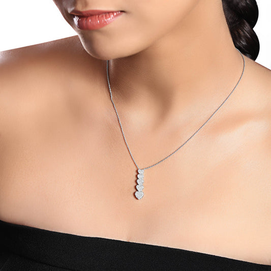 Solid Gold 0.3ct Natural Diamond 5 Heart Graduation Charm Necklace