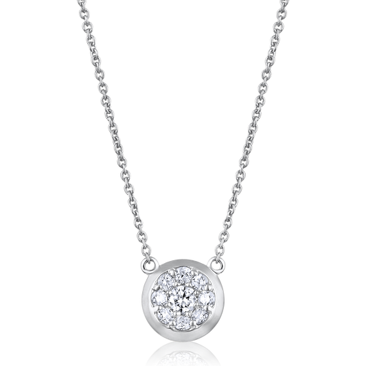 Solid Gold 0.3ct Natural Diamond Circle Round Single Charm Tiny Necklace