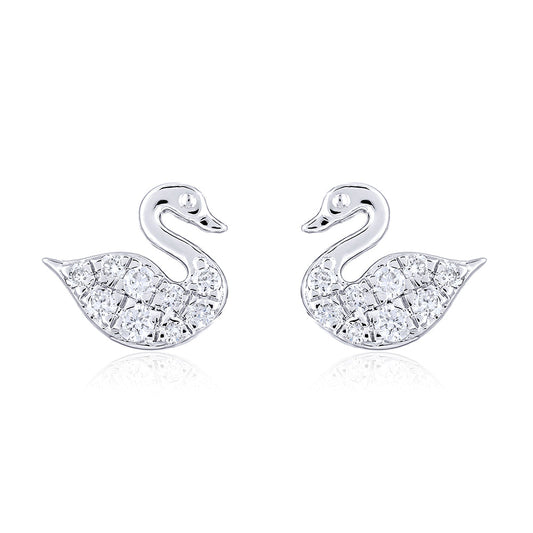 Solid Gold 0.2ct Natural Diamond Swan Necklace Earrings Set