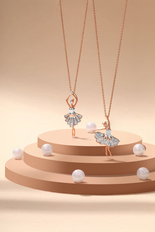 Solid Gold 0.3ct Natural Diamond Ballet Dancer Charm Necklace