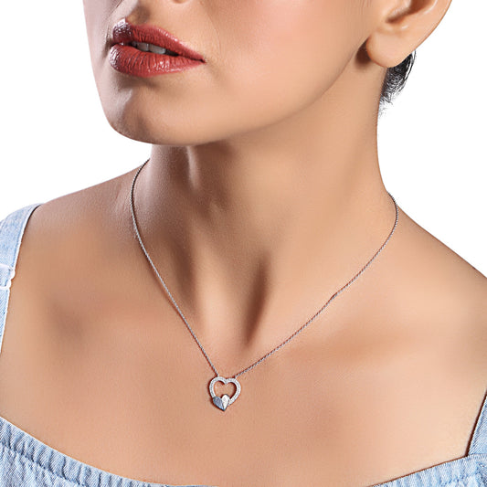 Solid Gold 0.2ct Natural Diamond Heart Love Studded Charm Necklace