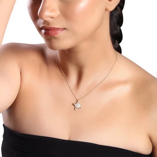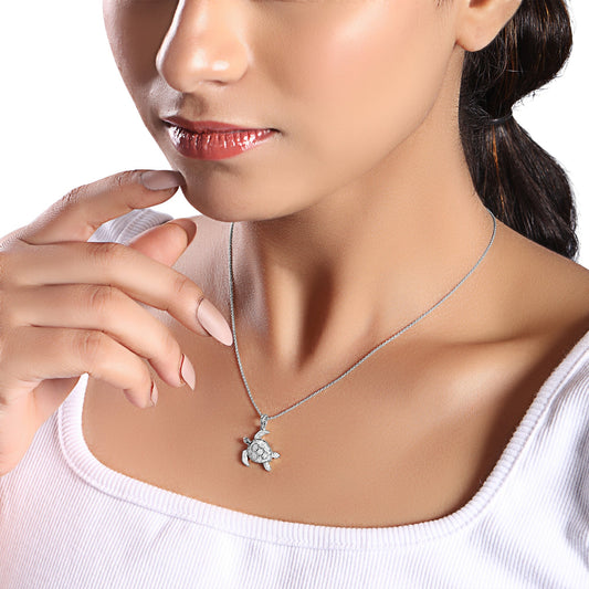 Solid Gold 0.2ct Natural Diamond Sea Turtle Studded Charm Necklace