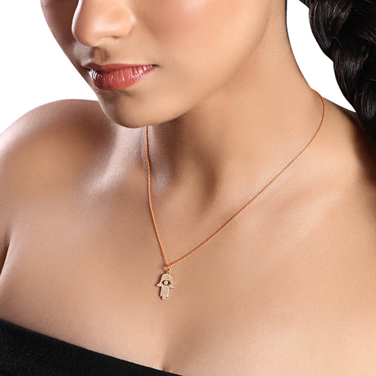 Solid Gold 0.2ct Natural Diamond Hamsa Evil Eye Charm Necklace