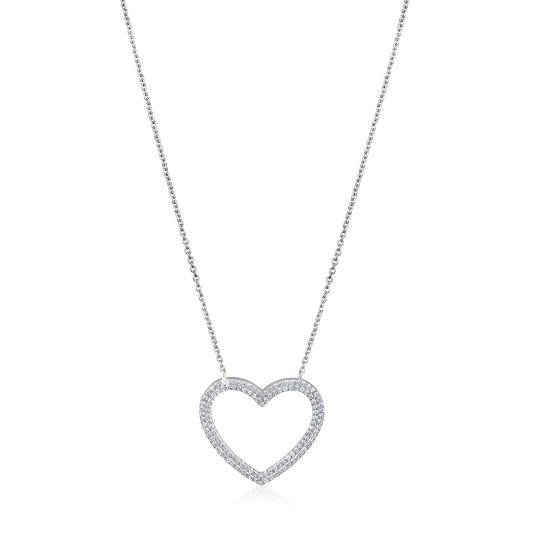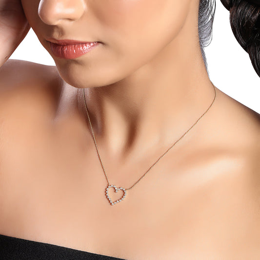 Solid Gold 0.2ct Natural Diamond Open Heart Bead CutOut Necklace