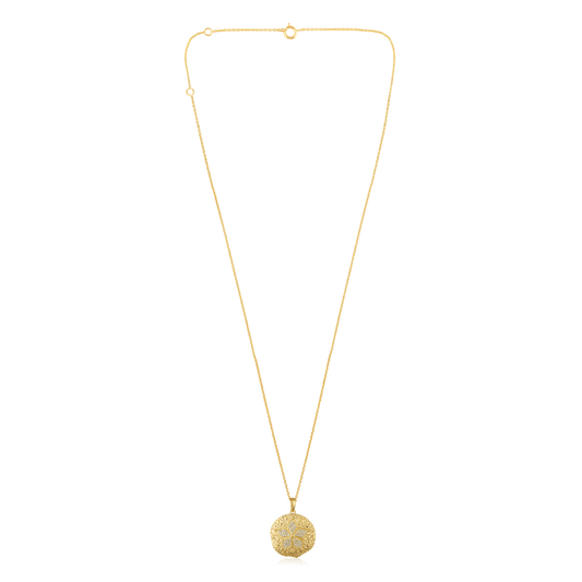 Solid Gold 0.2ct Natural Diamond Round Medallion Charm Disk Necklace