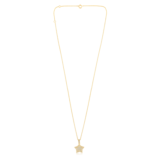Solid Gold 0.2ct Natural Diamond Star Halo Studded Charm Necklace