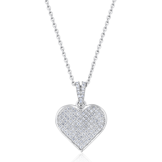Solid Gold 0.2ct Natural Diamond Heart Love Halo CutOut Charm Necklace