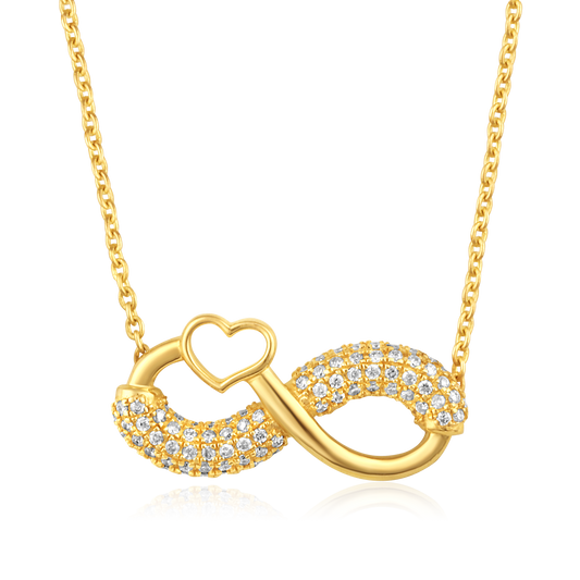 Solid Gold 0.2ct Natural Diamond Infinity Heart Cluster Charm Necklace