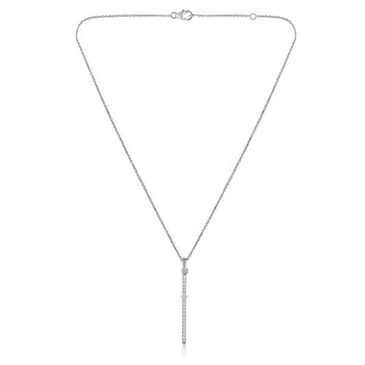 Solid Gold 0.2ct Natural Diamond Line Stick Bar Y Drop Necklace