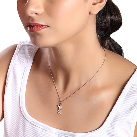 Solid Gold 0.2ct Natural Diamond 3 Butterfly Long Studded Charm Necklace