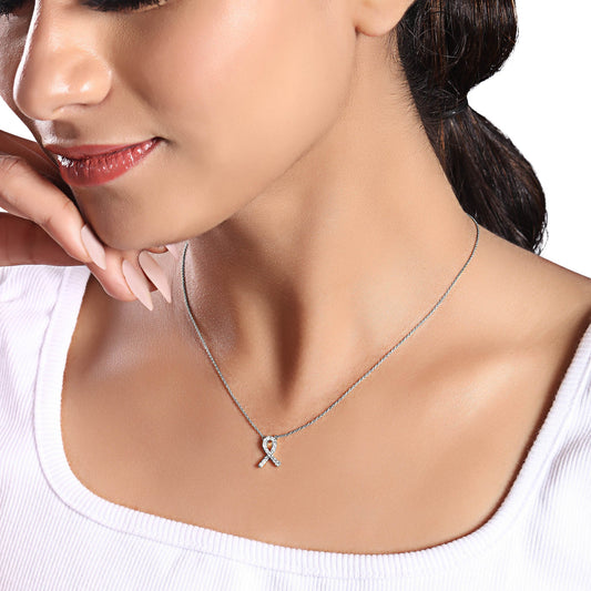 Solid Gold 0.2ct Natural Diamond Breast Cancer Awareness Ribbon Necklace
