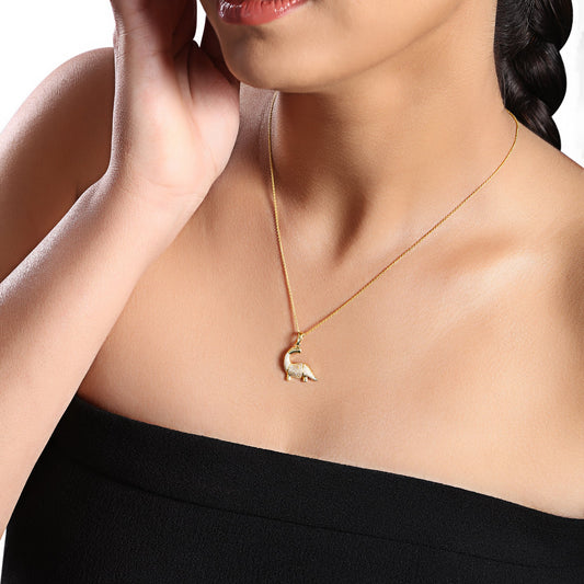 Solid Gold 0.2ct Natural Diamond Dinosaur Charm Pendant Necklace