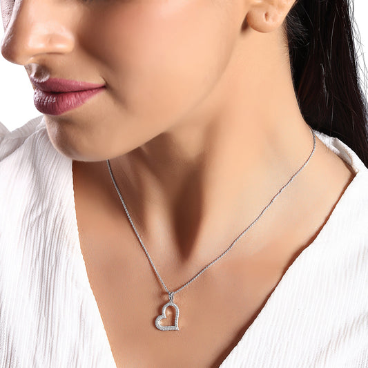 Solid Gold 0.2ct Natural Diamond Curvy Heart Tilt Charm Necklace