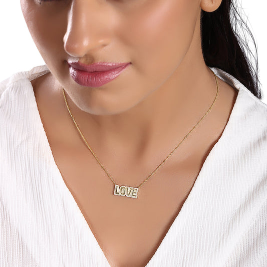 Solid Gold 0.2ct Natural Diamond Bubble Halo LOVE Alphabet Necklace