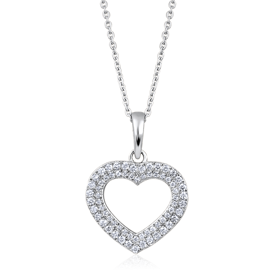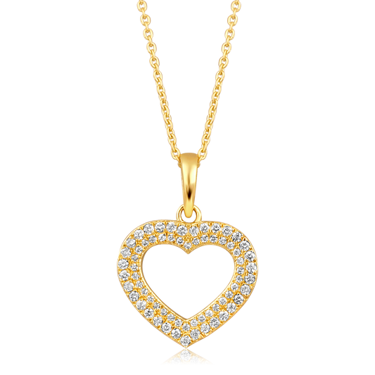 Solid Gold 0.24ct Natural Diamond Open Heart CutOut Charm Necklace